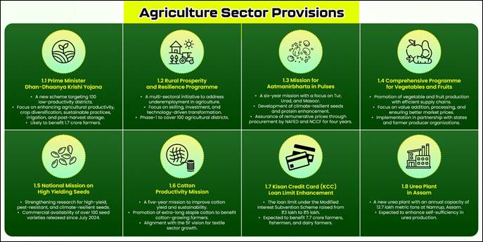 The Union Budget 2025-26 provisions for agriculture, animal husbandry, and dairying reflect the government’s commitment to boosting agricultural productivity, ensuring financial stability for farmers, and strengthening allied sectors.