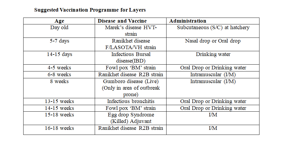 The vaccination schedule typically includes vaccines for both viral and bacterial diseases, with specific attention paid to diseases that are known to cause high economic losses or those that can lead to public health concerns. Vaccination protocols are developed based on the disease risks in different regions of India, taking into account the local poultry farming practices and the susceptibility of various poultry breeds.